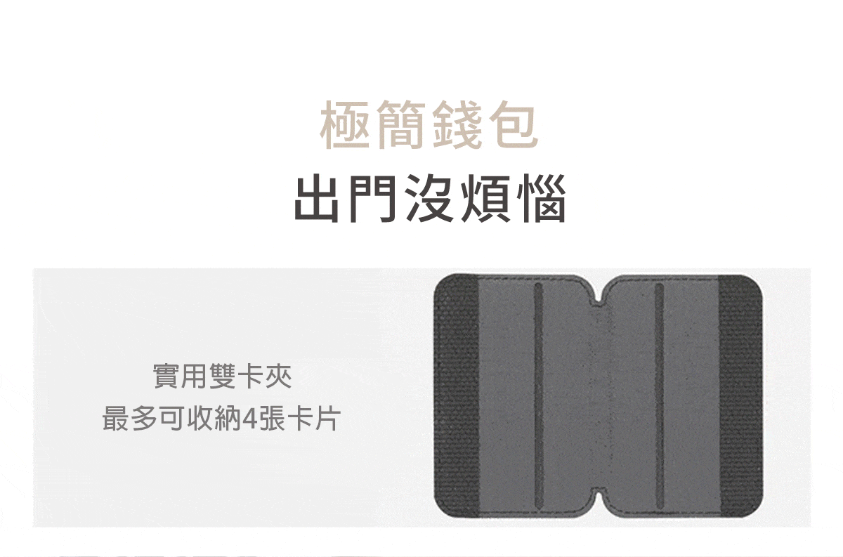 可收納四張卡片、鈔票,隨身攜帶提升手機便利性